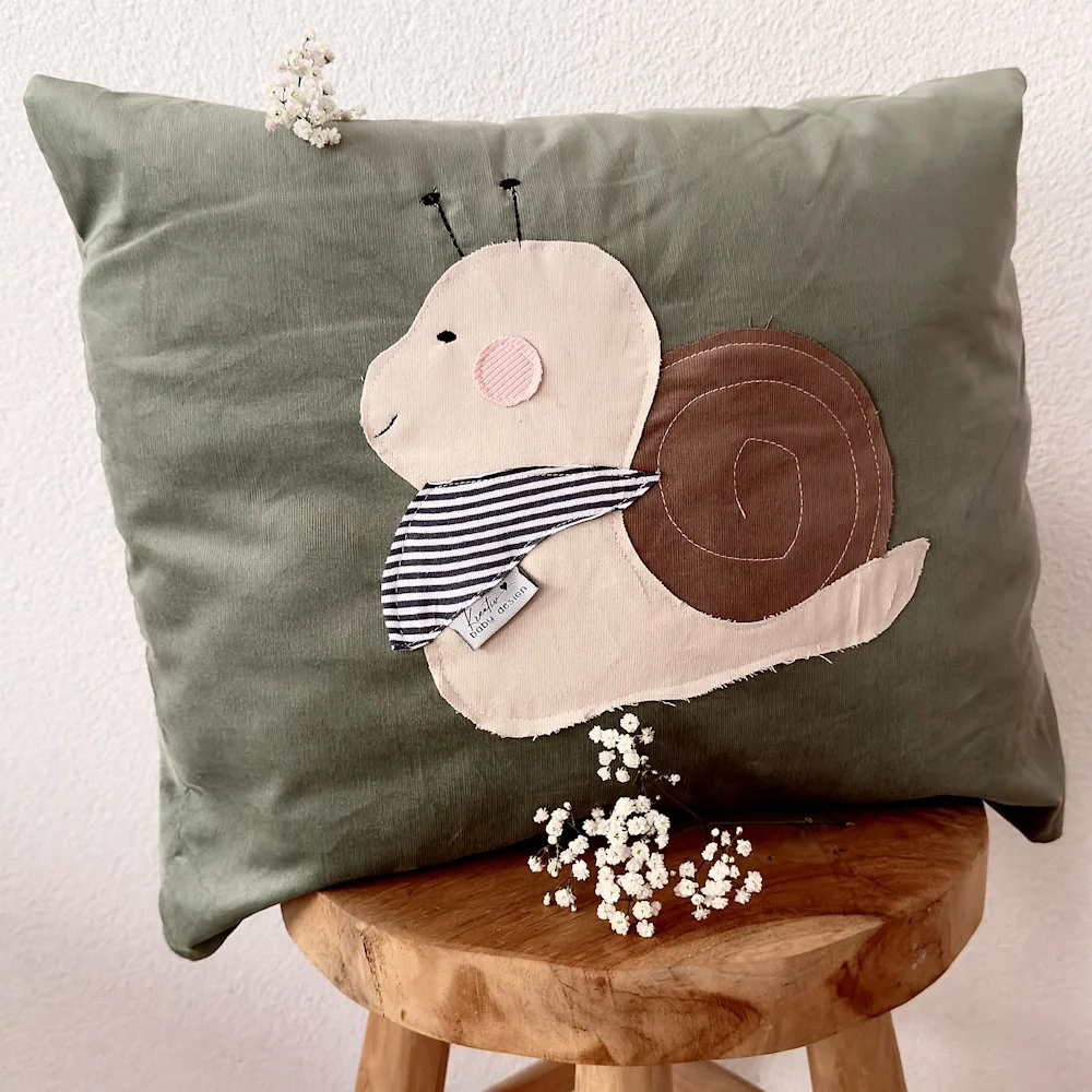 Unser Dekokissen in der Farbe KHAKI aus weichem Babycord Stoff ist ein dezenter, aber besonderer Hingucker für Kinderzimmer oder Wohnbereich. Die feine Cordstruktur sorgt für eine gemütliche, warme Optik und fühlt sich angenehm weich an. Auf der Vorderseite befindet sich eine liebevoll gestaltete Applikation, die dem Kissen seinen ganz eigenen Charme verleiht.