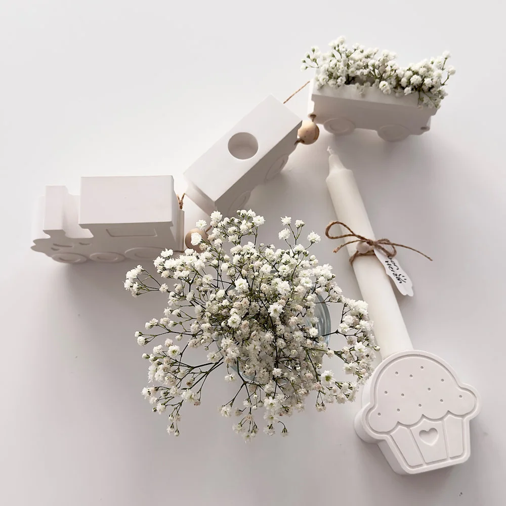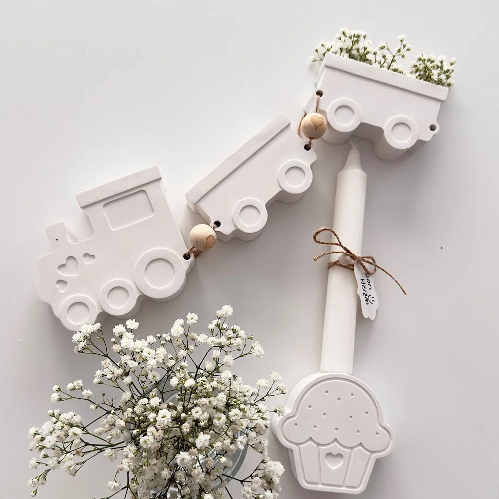 Raysin-Dekozug & Cupcake-Kerzenhalter – liebevolle Deko fürs Zuhause Dieses charmante Duo aus Raysin bringt spielerischen Stil in jedes Kinderzimmer oder auf Regale & Sideboards. Auf der Produktabbildung siehst du beide Artikel zusammen, die separat ausgewählt und bestellt werden können: