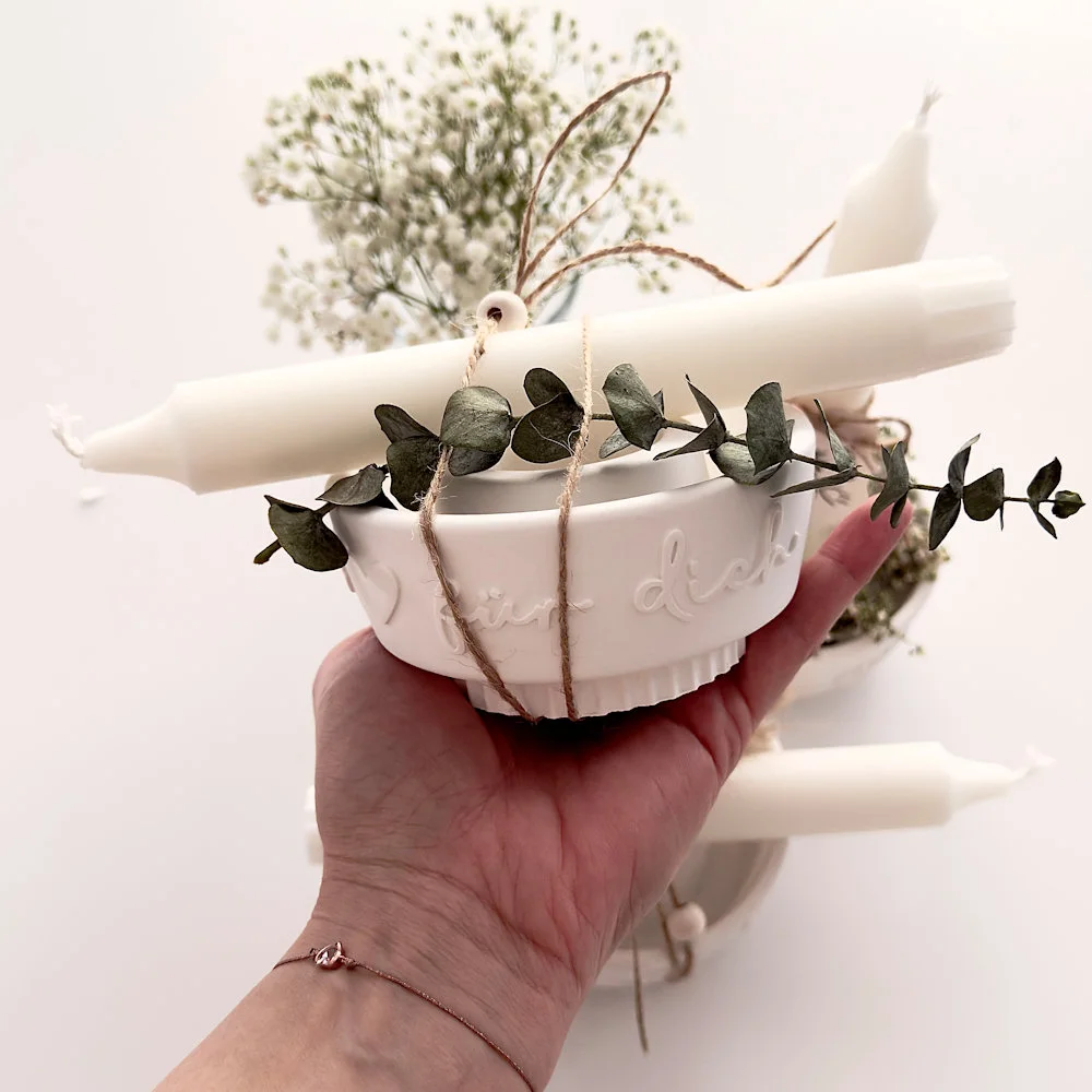 Handgemachter Raysin-Kerzenhalter – „Nur eine Kleinigkeit für dich“ ❤️ Dieser liebevoll gestaltete Kerzenhalter aus Raysin ist ein zauberhaftes kleines Geschenk oder eine dekorative Aufmerksamkeit für Zuhause. Auf der Vorderseite ist der Schriftzug „Nur eine Kleinigkeit für dich“ mit einem Herz aufgebracht – perfekt, um jemandem eine kleine Freude zu machen.
